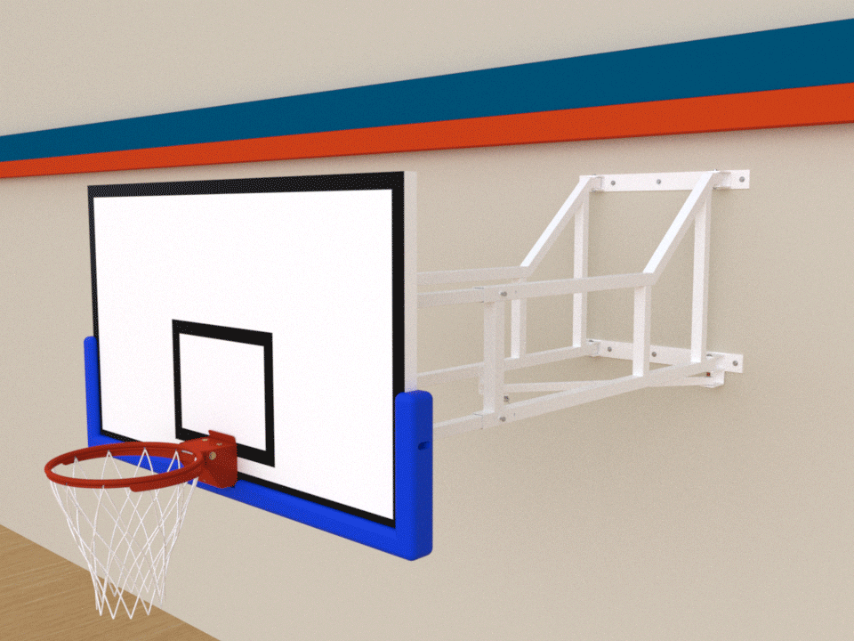 Bóng rổ treo tường xếp gập, khung chính bằng thép vuông 60 x 60mm và 50 x 50mm, sơn tĩnh điện