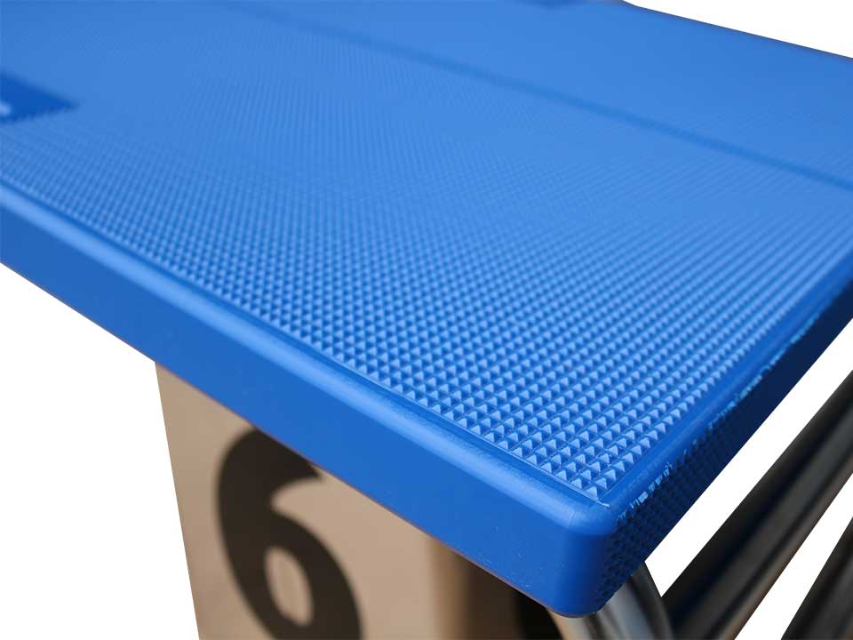 1. Bề mặt chống trơn trượt, có thể điều chỉnh vị trí miếng dậm nhảy theo nhu cầu của vận động viên |