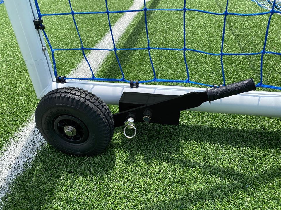 Bộ dụng cụ này bao gồm một cặp bánh xe, được gắn chặt vào các khung thành bóng đá di động để cải thiện khả năng di chuyển.
