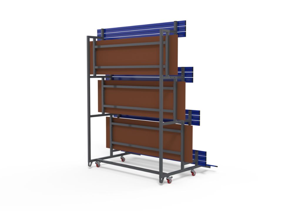 Khán đài di động bằng thép hộp vuông 40 x 40mm. Thanh ngồi và lưng tựa bằng nhôm 80 x 20mm.