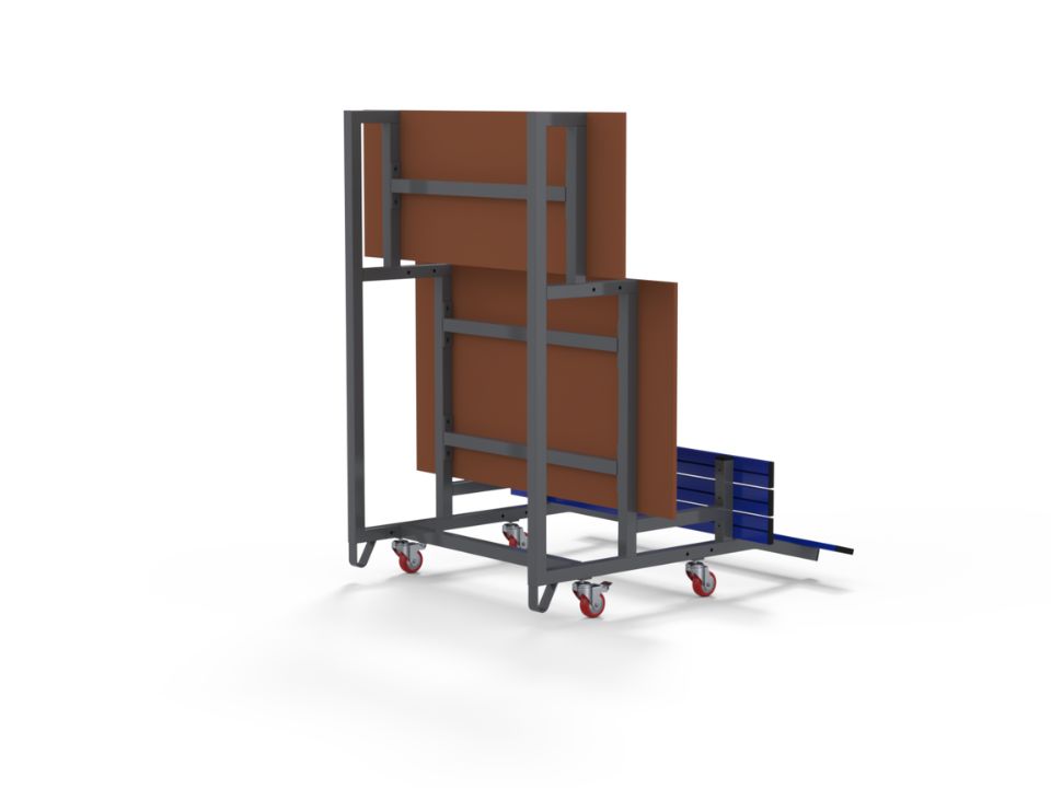Khối cầu thang di động bằng thép hộp vuông 40 x 40mm. Thanh ngồi và lưng tựa bằng nhôm 80 x 20mm