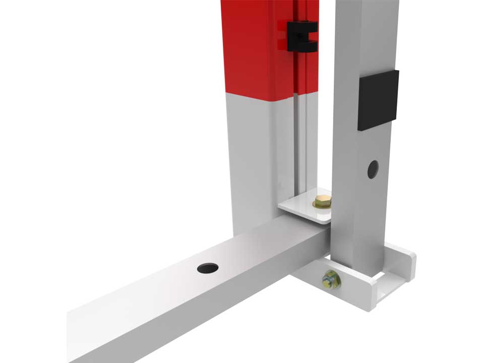 - Khung chính bằng ống nhôm vuông 80 x 80mm, sơn tĩnh điện 2 màu đỏ - trắng (các màu khác theo yêu cầu).