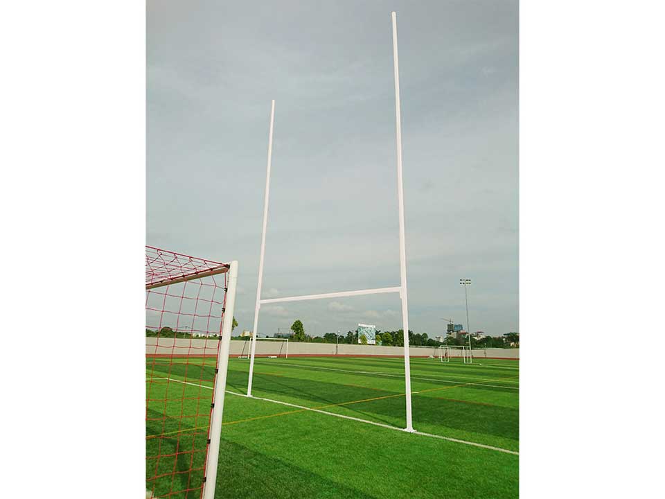 Trụ rugby chôn nòng bằng ống nhôm Ø101.6mm. Kích thước theo quy định của quốc tế