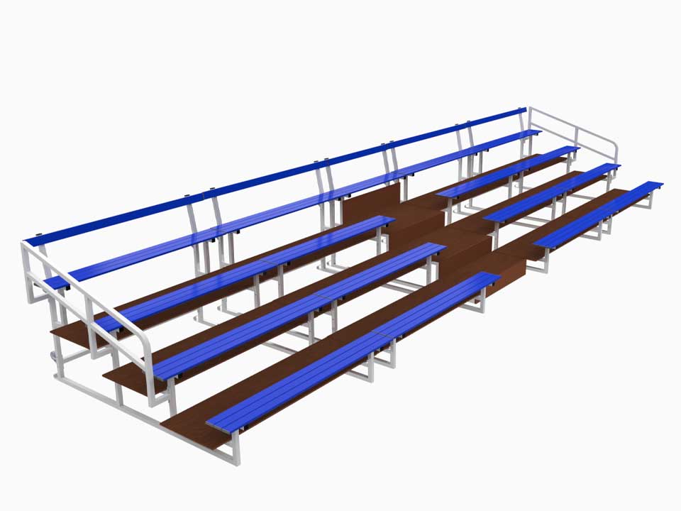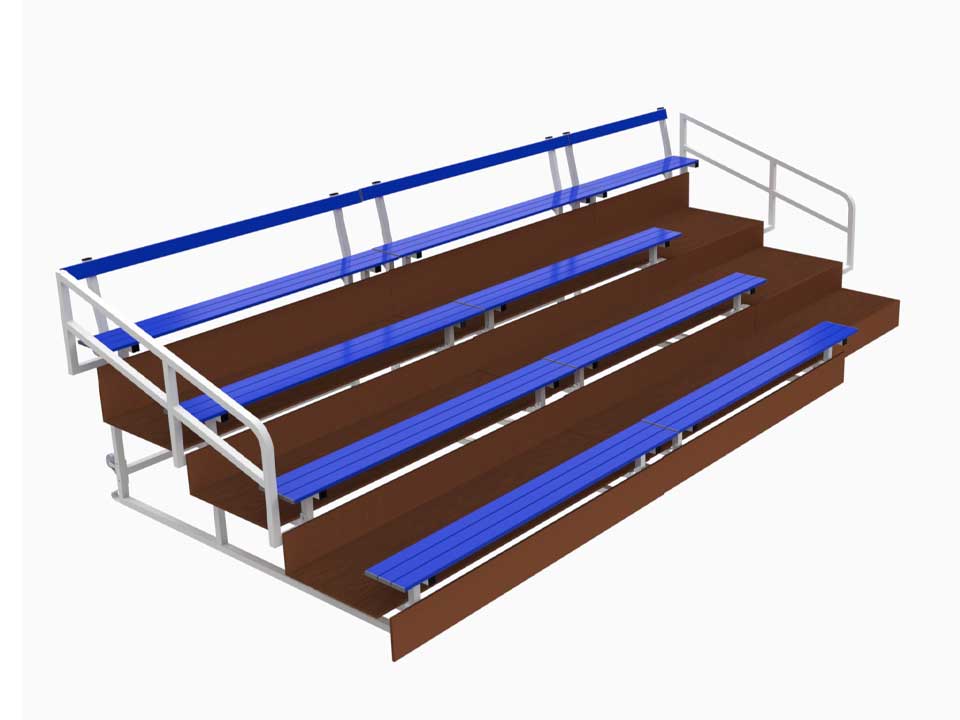 Bộ lan can được làm bằng thép vuông 40 x 40mm, sơn tĩnh điện trắng, sử dụng cho khối khán đài 4 hàng ghế, sức chứa 16 người.
