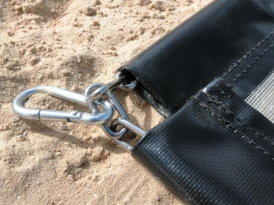 Xích inox dài 28m, luồn bên trong băng xung quanh PVC đen.