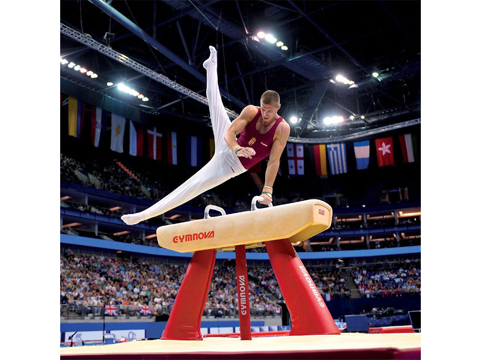 Ngựa tay quay bọc da thi đấu. Thân ngựa được bọc da thật