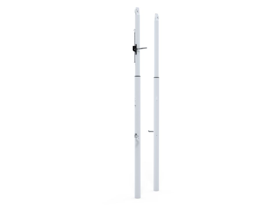 - Thân trụ được thiết kế xếp lồng vào nhau, có thể điều chỉnh chiều cao từ 2.24m - 2.45m bằng tay quay.