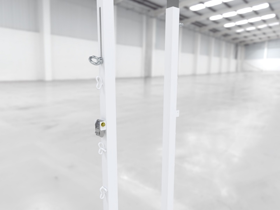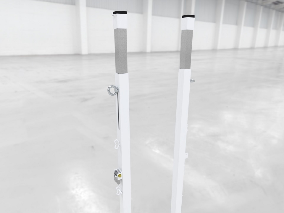 Thân trụ làm bằng thép vuông 40 x 40mm, chiều cao có thể điều chỉnh từ 1,40 đến 1,55m, sơn tĩnh điện màu trắng.