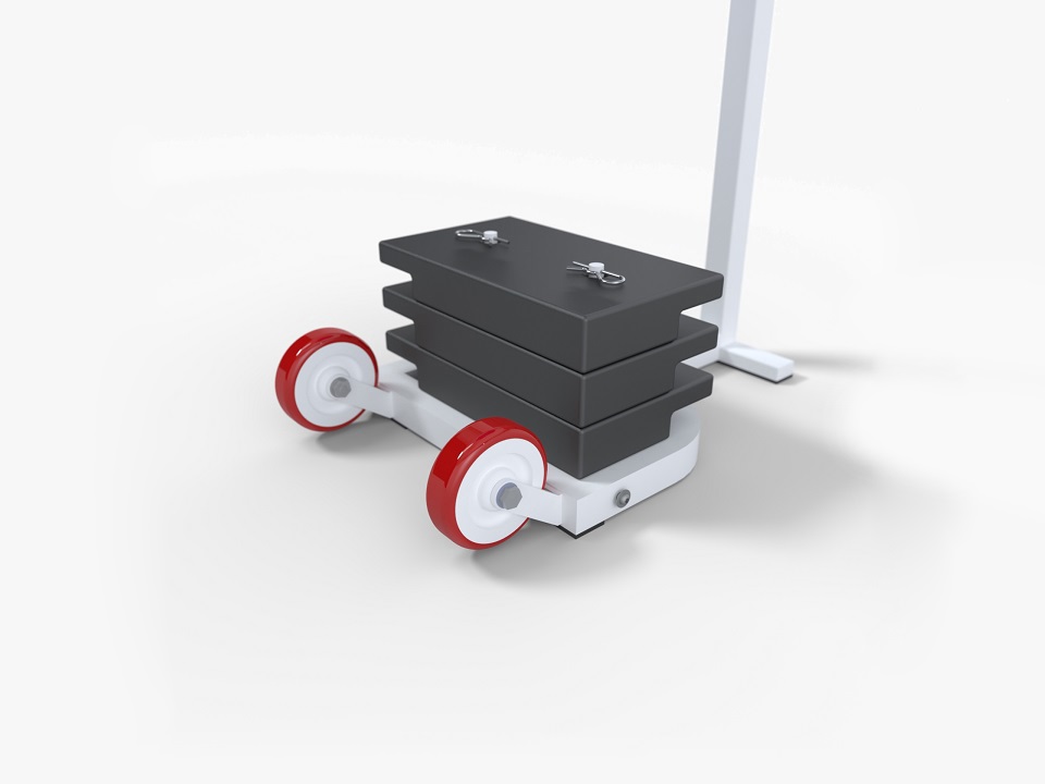 Hệ thống bánh xe cùng bộ đối trọng xếp chồng có thể tháo rời riêng lẻ, giúp di chuyển trụ dễ dàng hơn.