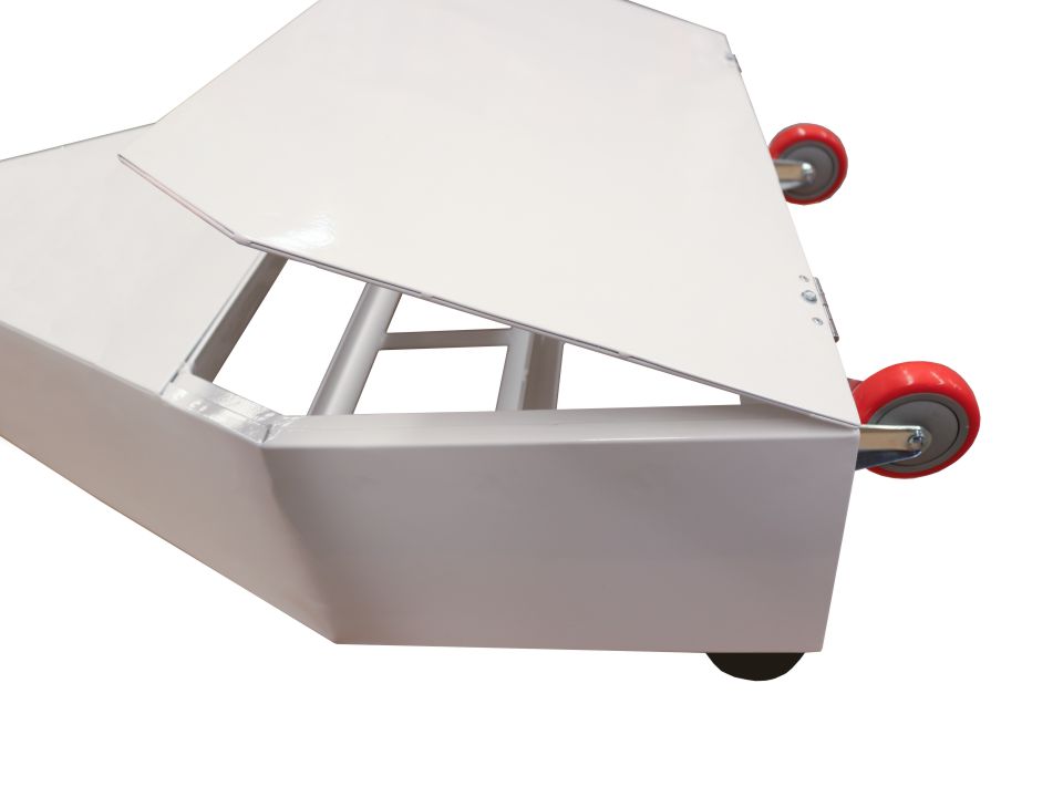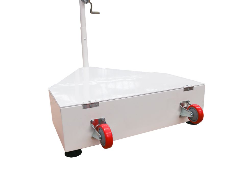 Đối trọng bê tông 80kg/trụ, có bánh xe và bọc nệm bảo hộ.
