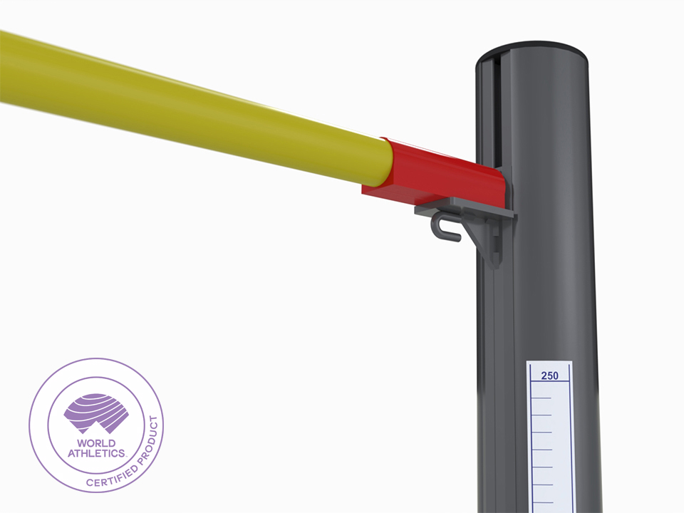 3. Trên mỗi trụ có con trượt đỡ thanh xà (dùng cho thi đấu) và móc treo dây nhảy cao (dùng cho tập luyện) |