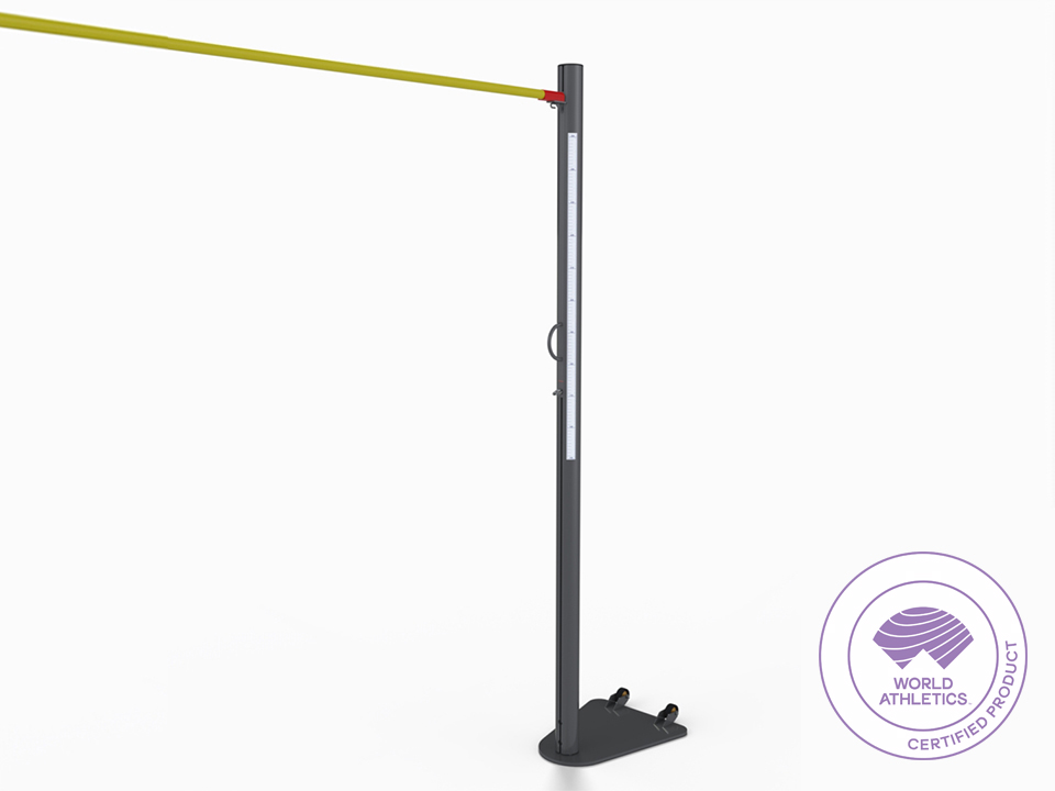 Trụ nhảy cao di động dùng cho thi đấu. Vật liệu bằng nhôm. Chiều cao có thể điều chỉnh từ 1.1m - 2.7m