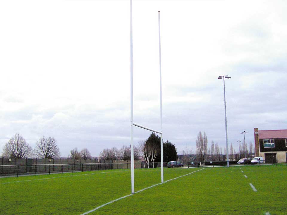 Trụ rugby xếp gập bằng bản lề, cao 15m, ống nhôm Ø101.6mm