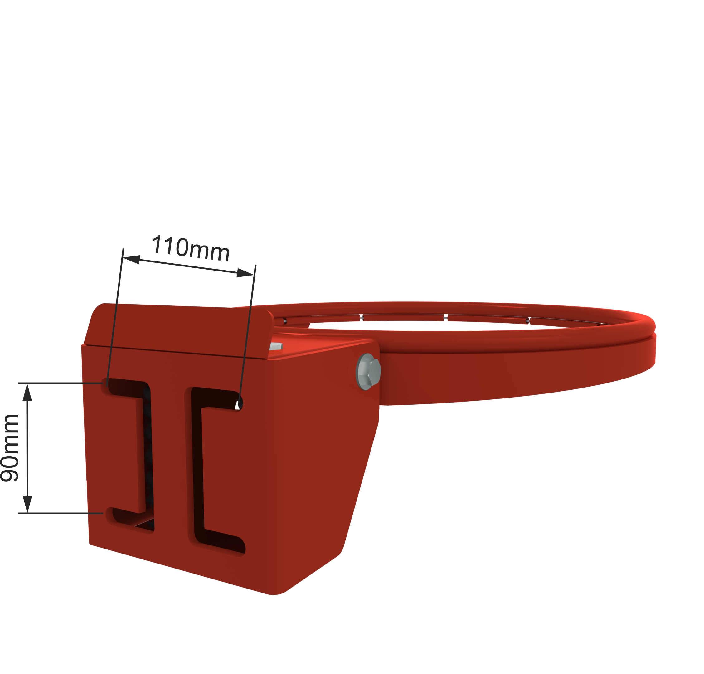 Vành rổ bằng thép đặc Ø18mm, sơn tĩnh điện cam, phủ lớp chống ăn mòn. Đường kính vành rổ: 450mm
