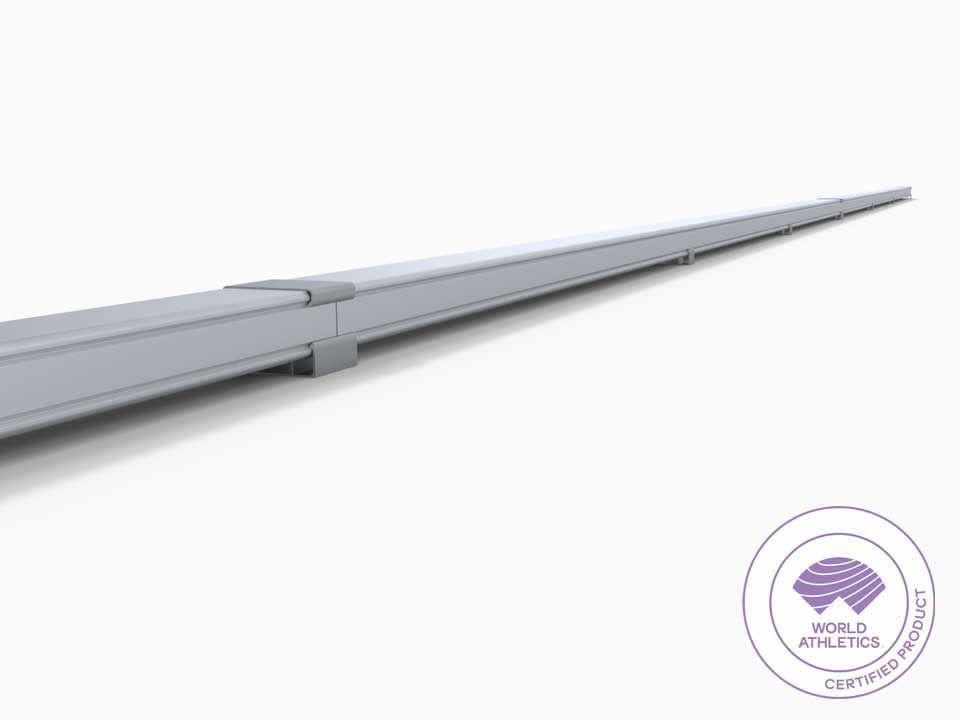 Viền đường chạy làm bằng hộp nhôm, độ bền cao.