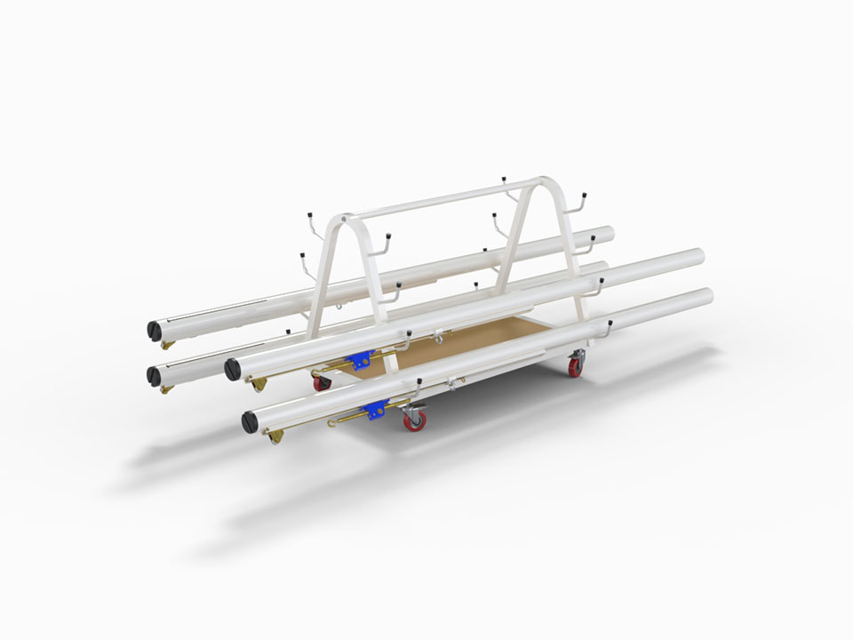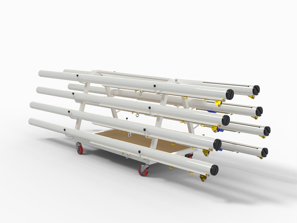 Xe đẩy trụ bóng chuyền bằng thép, sơn tĩnh điện trắng. Sức chứa 4 bộ trụ.