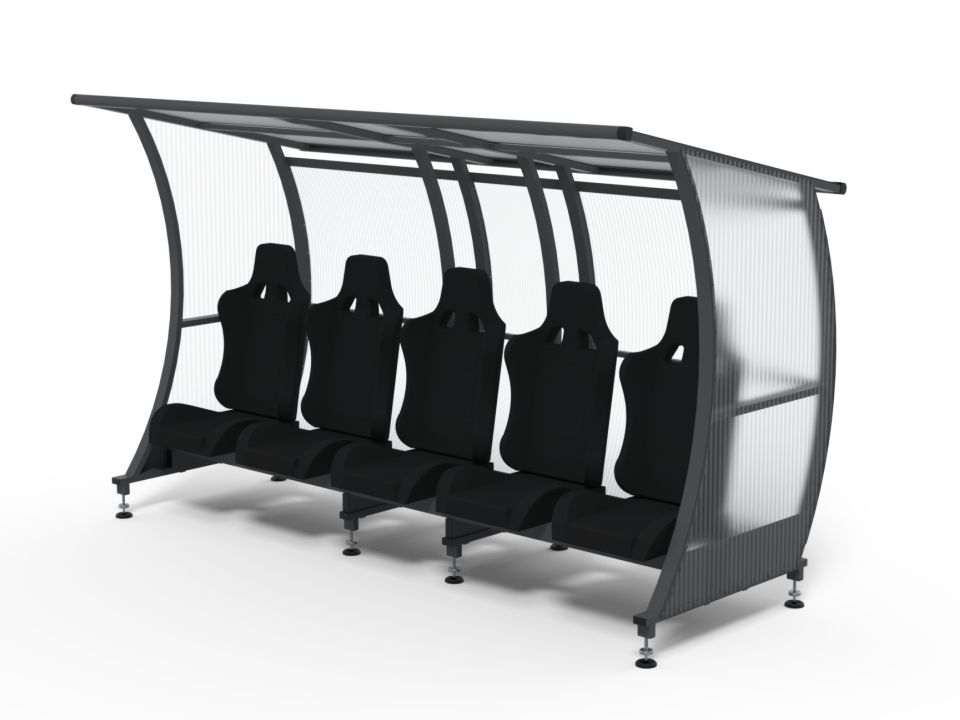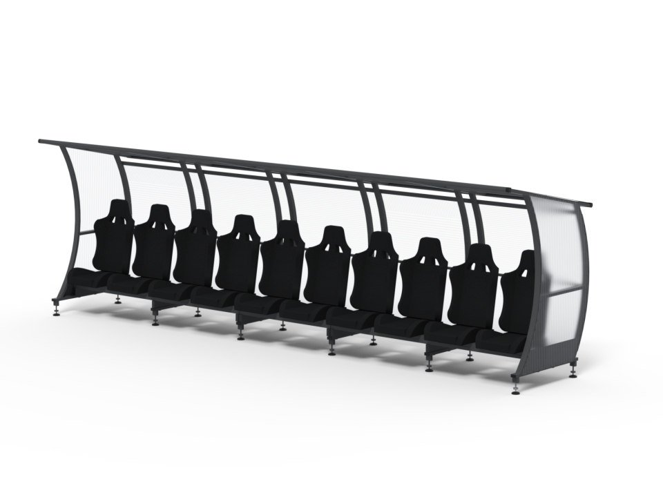 Băng ghế kỹ thuật VIP, sức chứa 8 người, chiều dài 5.07m. Lợp mái polycarbonate