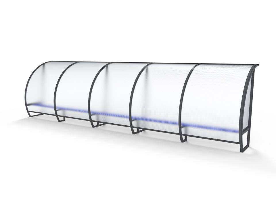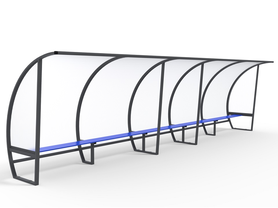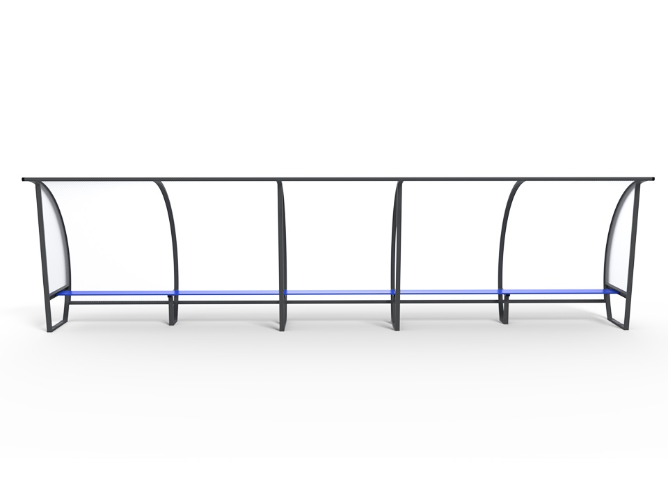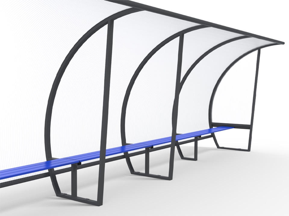 Khung ghế và thanh ngồi nhôm. Tấm lợp polycarbonate. Giao kèm bộ định vị nền