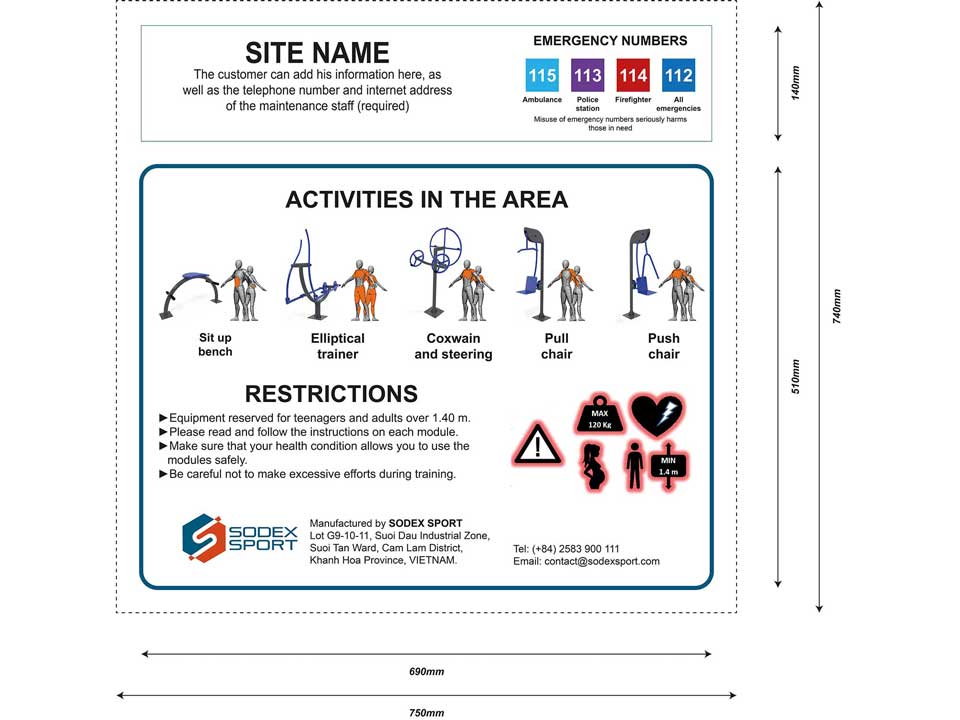 Được lắp đặt ở cổng ra vào công viên hoặc khu vực lắp đặt các thiết bị thể thao