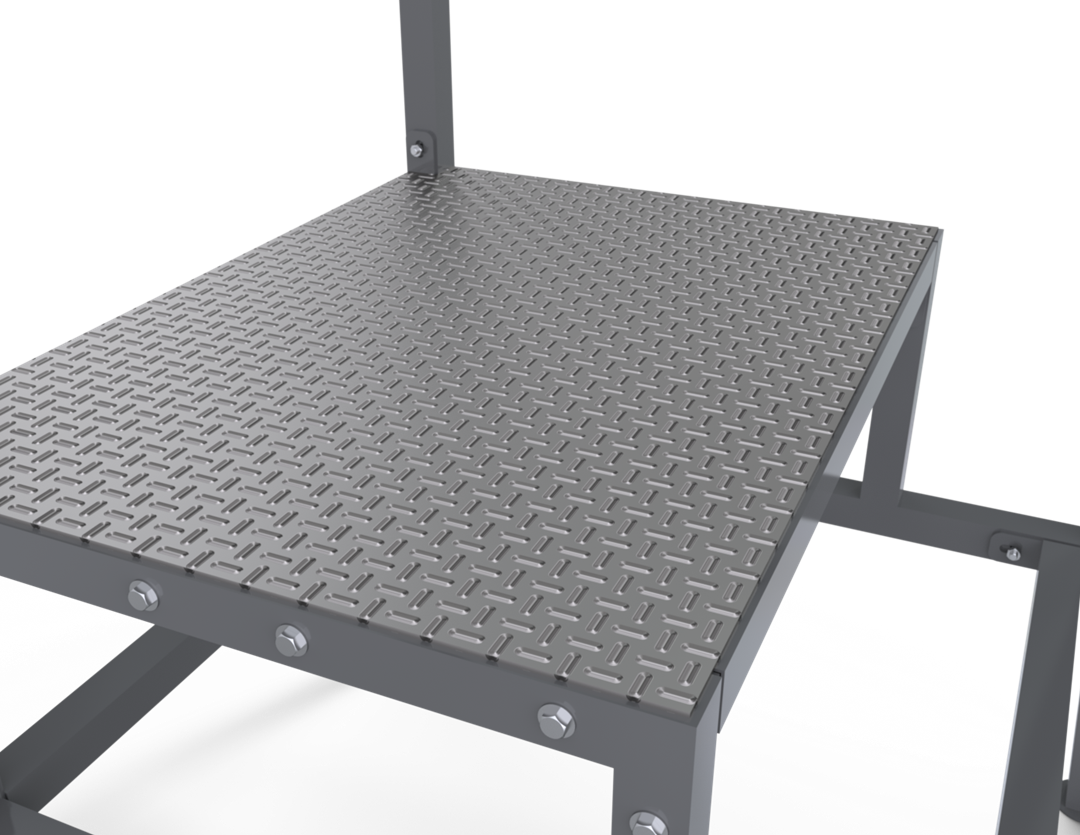 Bục trọng tài xuất phát môn điền kinh, khung bằng thép hộp kẽm, sơn tĩnh điện xám đậm. Thiết kế di động, có bàn ghi điểm.