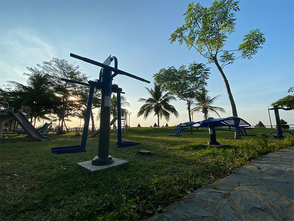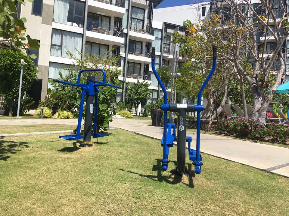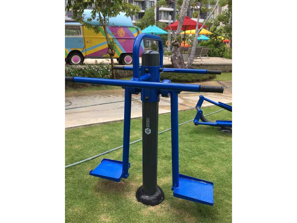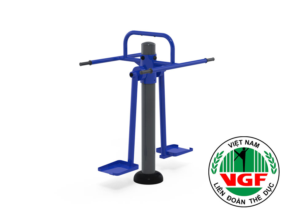 - Đặt hai chân lên bàn để chân, hai tay nắm chặt tay cầm, thực hiện động tác đánh hai chân qua trái/phải như con lắc, giữ cố định phần trên cơ thể.