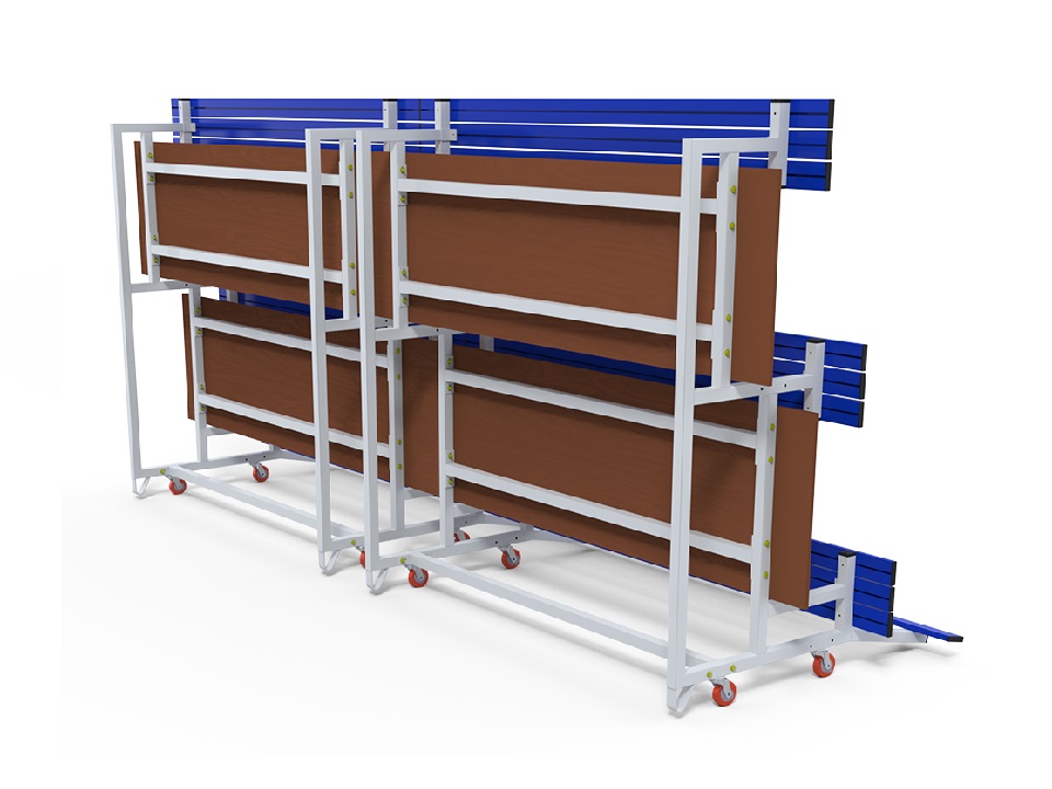 Khi không sử dụng, các khối khán đài có thể được dựng lên, di chuyển nhờ các bánh xe.
