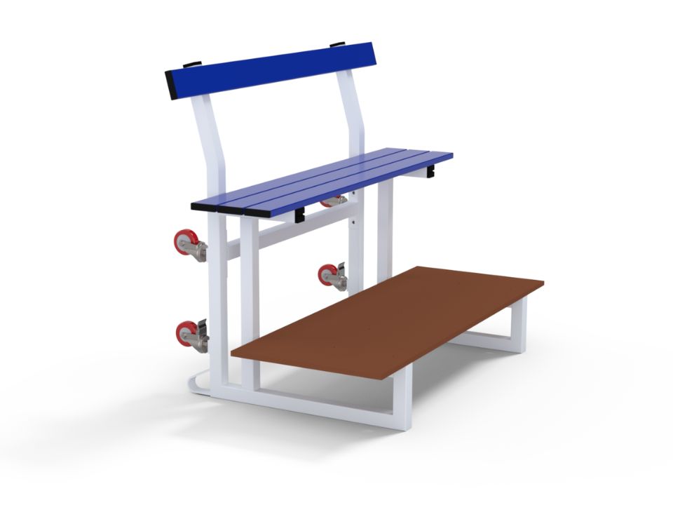 -Bộ khán đài di động xếp, gồm 4 khối ghế 4 hàng, 1 cầu thang, 2 lan can