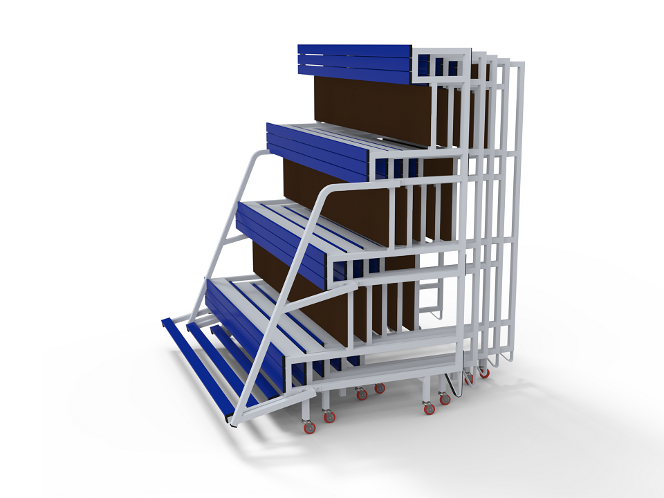 -Các khối khán đài được ghép với nhau thành dãy khán đài lớn, có thể xếp gọn khi không sử dụng