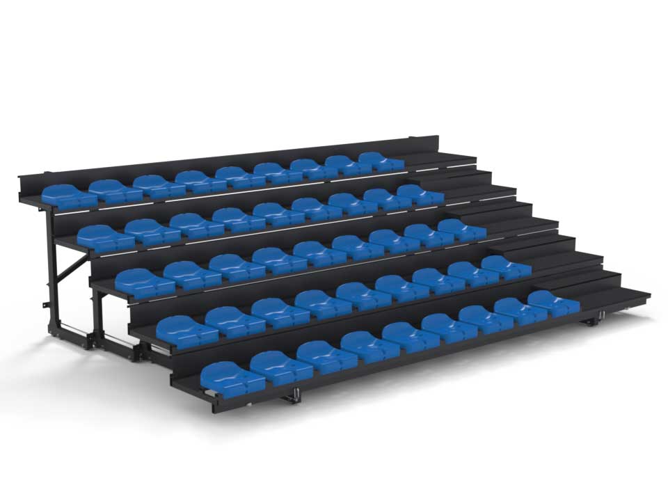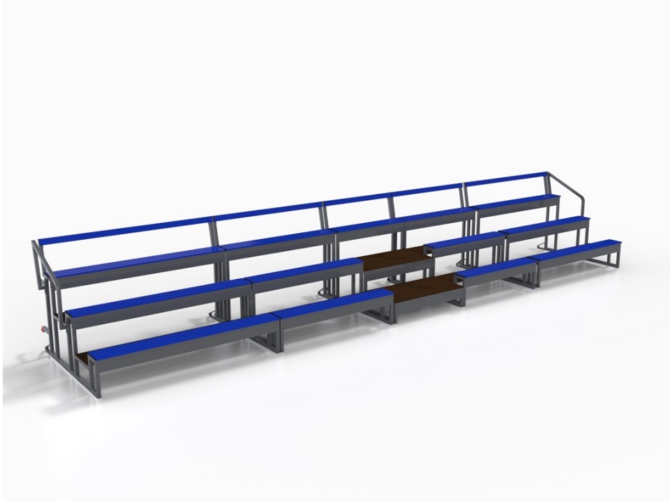 1. Hệ thống tự khóa không dùng đinh ốc / bu lông: Lắp ráp dễ dàng, nhanh chóng, không có nguy cơ bị bung ra do tác động từ khán giả (đi đứng / ngồi / di chuyển). |