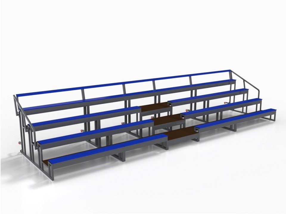 - Bộ khán đài di động xếp, gồm 4 khối ghế 3 hàng, 1 cầu thang, 2 lan can