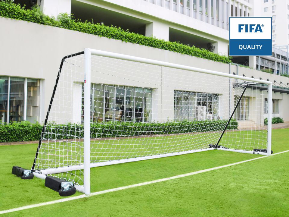 Khung thành bóng đá di động bằng nhôm dành cho 7 người, có khung chân đế, phù hợp với tiêu chuẩn Châu Âu EN 16579.