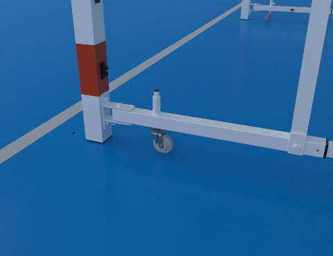 Khung thành bóng ném xếp gắn tường hàn liền khối, thép mạ kẽm, chiều sâu điều chỉnh từ 1m tới 1.4m