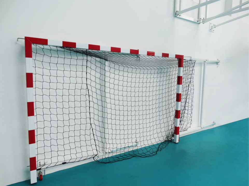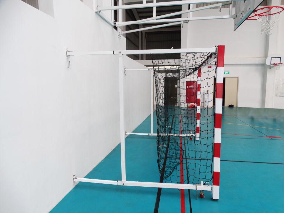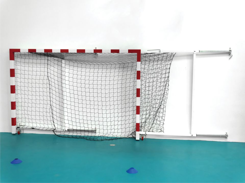 Khung thành bóng ném xếp gắn tường, thép mạ kẽm, tầm vươn điều chỉnh từ 1m đến 1.4m