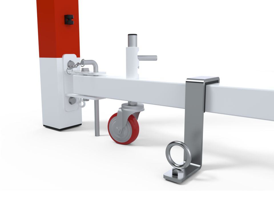 - Mỗi khung thành được lắp 2 bánh xe cùng với chốt khóa ở vị trí sử dụng hoặc xếp.