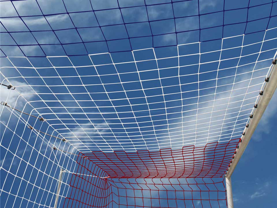 - Lưới bóng đá dùng cho khung thành 11 người hình thang phối 3 màu: xanh dương + đỏ + trắng