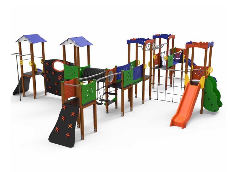 Tổ hợp trò chơi liên hoàn với cầu, ống chui và cầu trượt