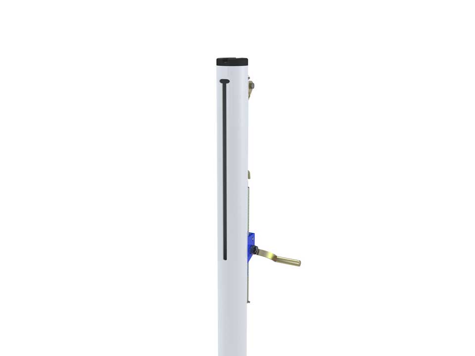 Trụ bóng chuyền chôn nòng dùng cho thi đấu, cấp độ B. Thân trụ bằng ống nhôm Ø90mm, sơn tĩnh điện màu trắng.