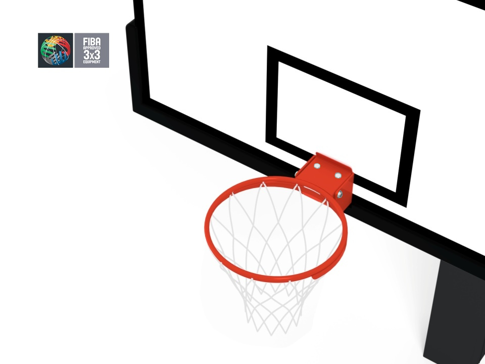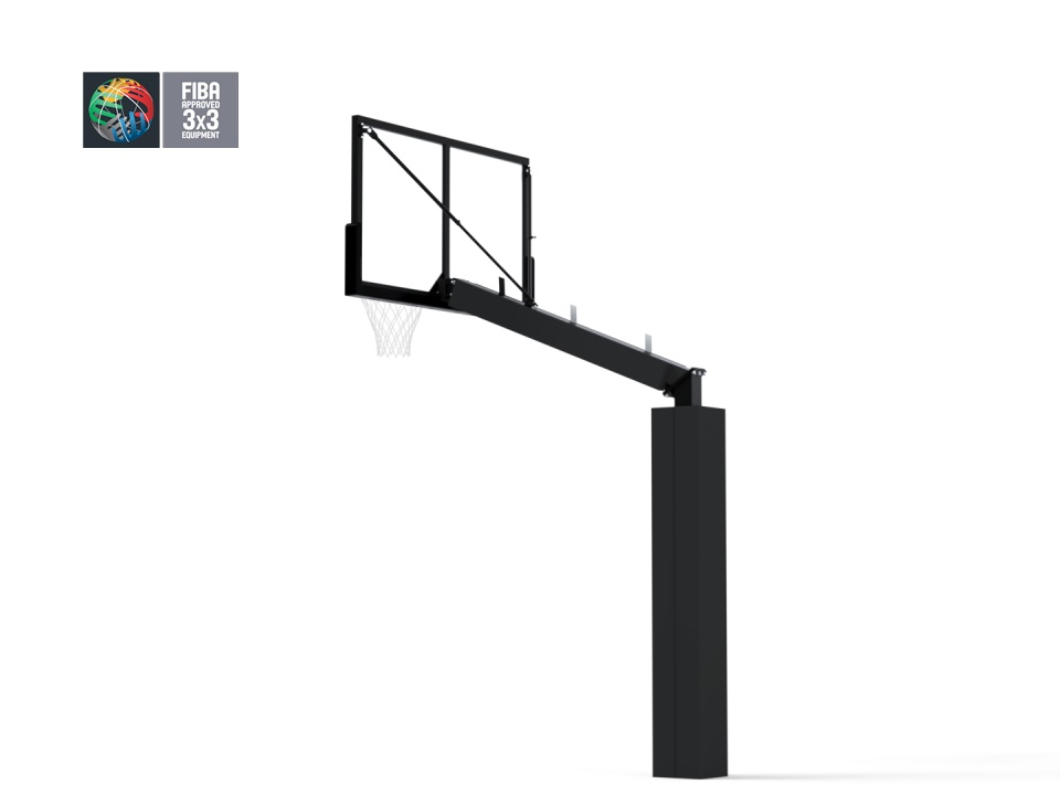 Trụ bóng rổ 3x3 đặt nổi cố định ngoài trời, tầm vươn 1.65m, được FIBA chứng nhận.