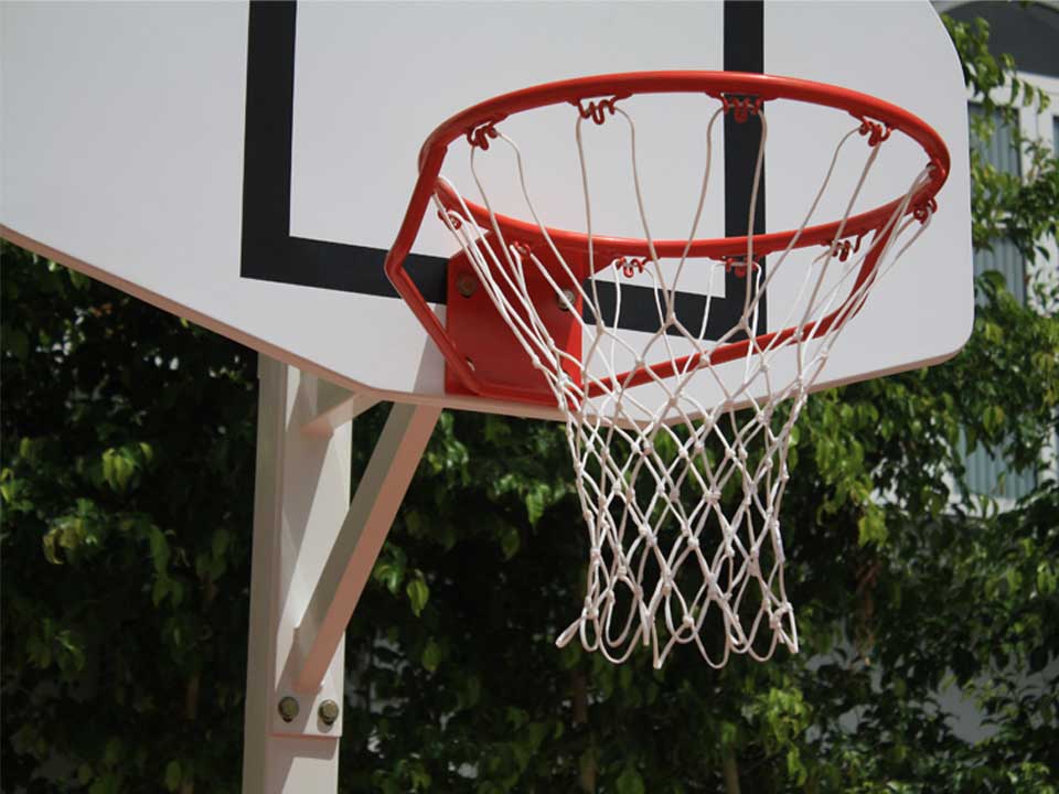 - Trụ bóng rổ ngoài trời chôn bê tông cố định, ống thép mạ kẽm vuông 100mm x 100mm