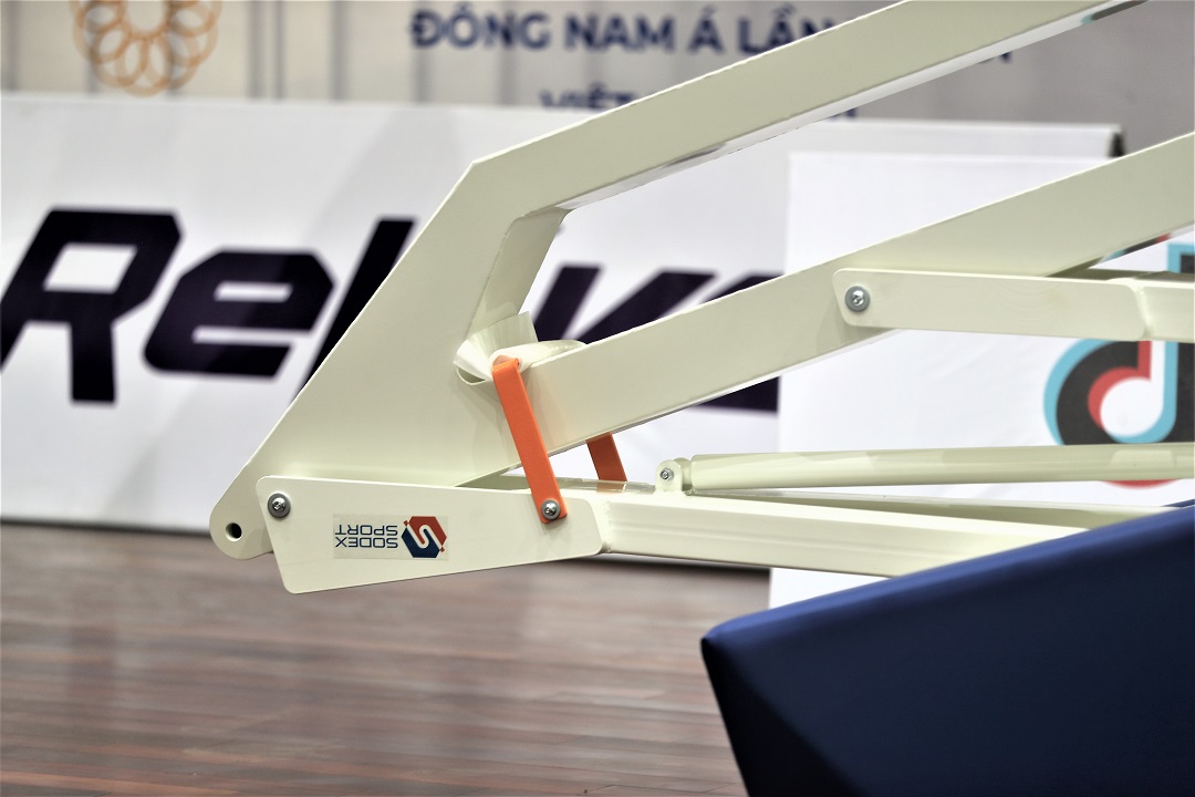 - Chiều cao vành rổ có thể điều chỉnh ở mức: 3.05m/ 2.6m. Vành rổ có thể nghiêng 180°