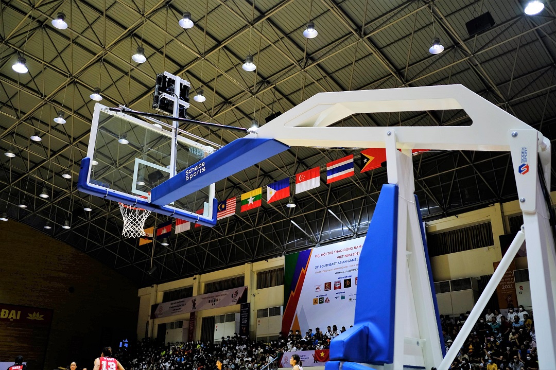 - Bảng rổ bằng kính cường lực, dày 12mm. Bọc bảng rổ bằng chất liệu PU cao cấp