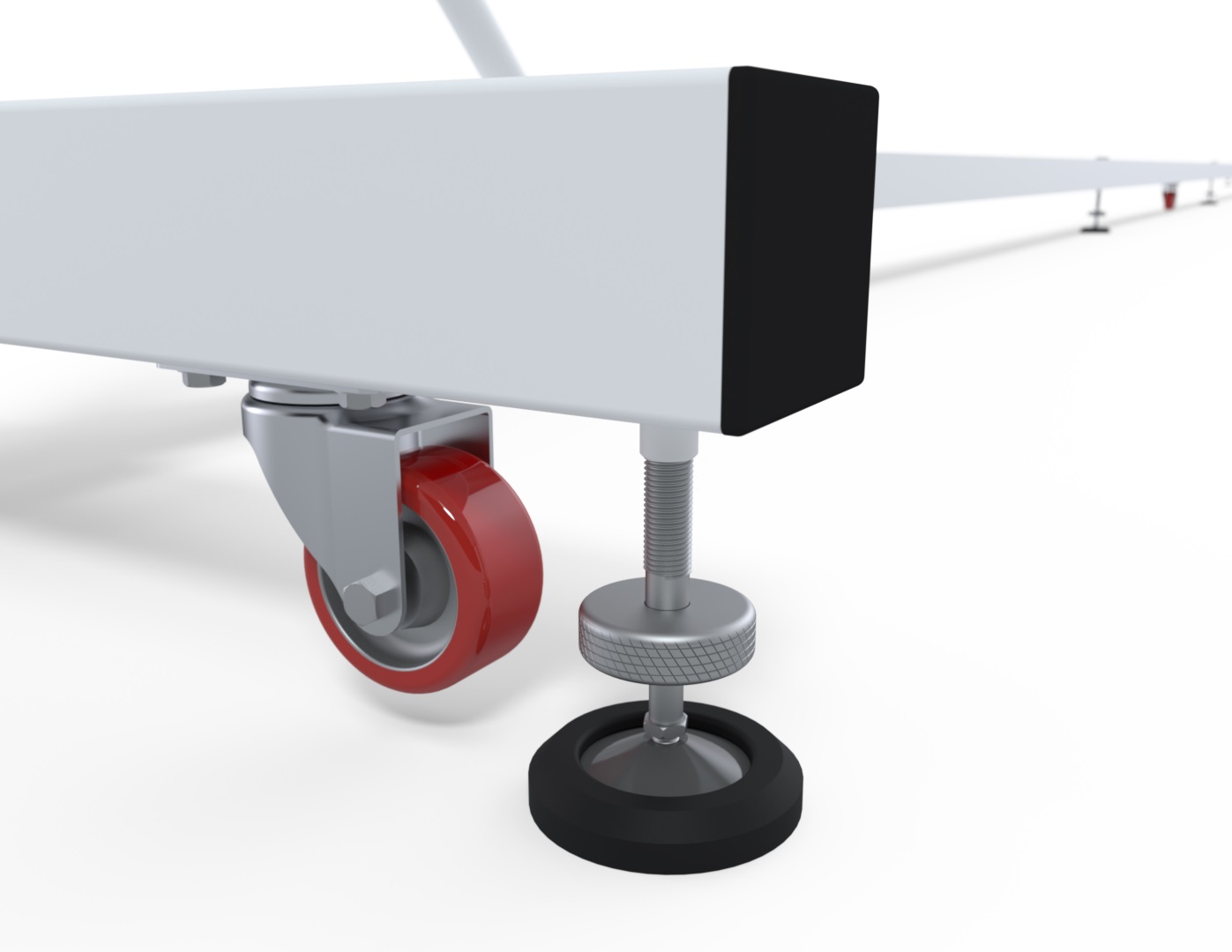 ![]() 1. Chân chống xoay có thể nâng/hạ giúp trụ cân bằng ở bề mặt sân không bằng phẳng | ![]() 2. Dễ dàng tháo lắp thuận tiện | ![]() 3. Mỗi bên trụ có gắn đối trọng thép nặng 50kg giúp toàn bộ khung đứng vững | ![]() 4. Sản phẩm gồm 6 bánh xe |