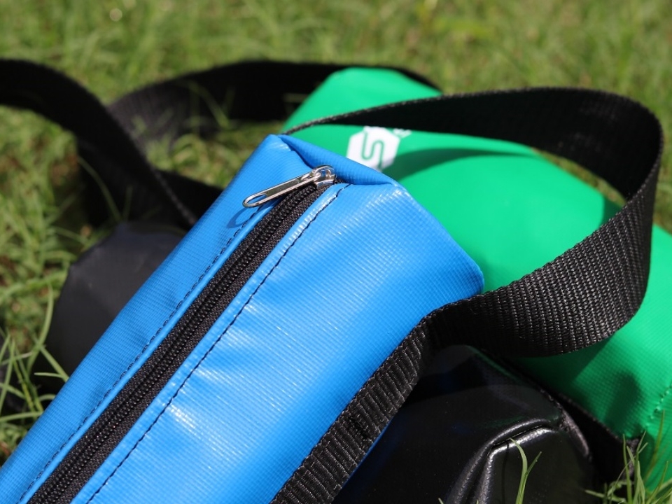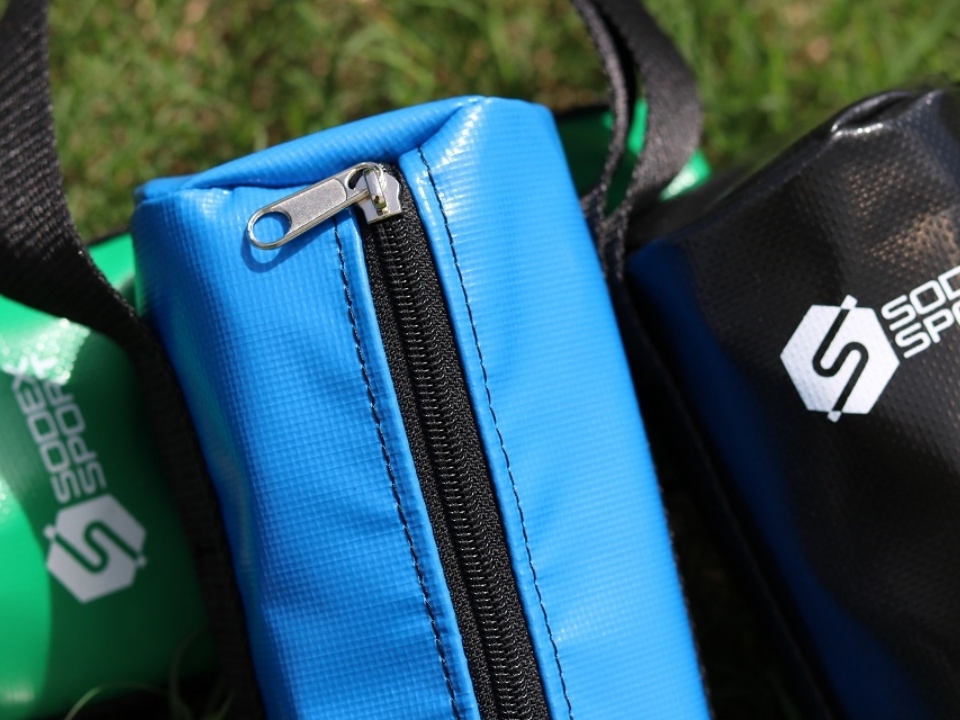 Túi đựng bi sắt. Có khóa kéo và tay nắm may dọc túi