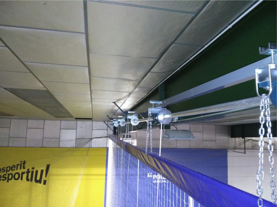 Hệ thống vách ngăn tự động gắn khung treo trần có động cơ điện.