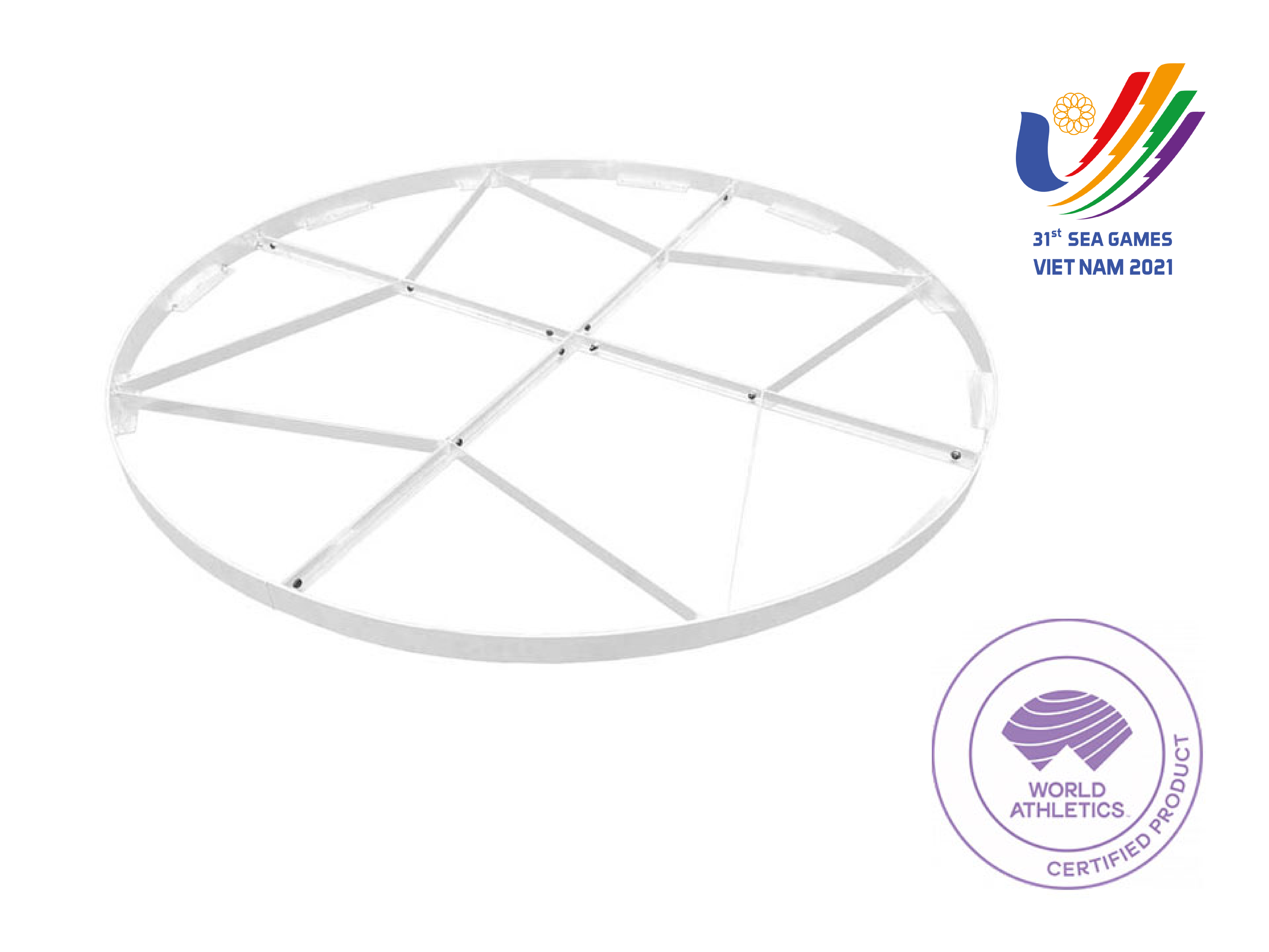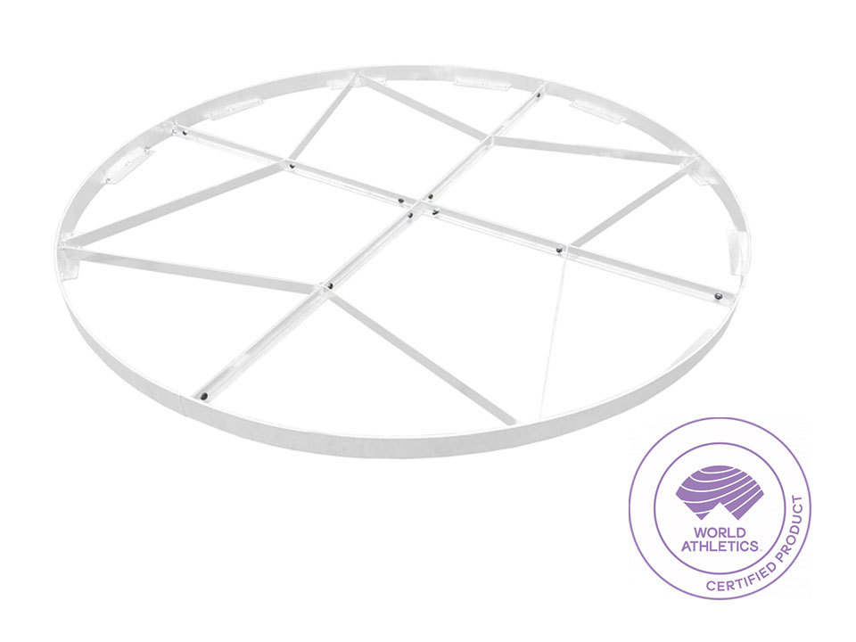 Vòng ném đĩa tròn đường kính 2,50m, làm bằng khung thép mạ kẽm sơn tĩnh điện màu trắng. Bao gồm 4 phần rời để dễ dàng lắp ráp hơn.