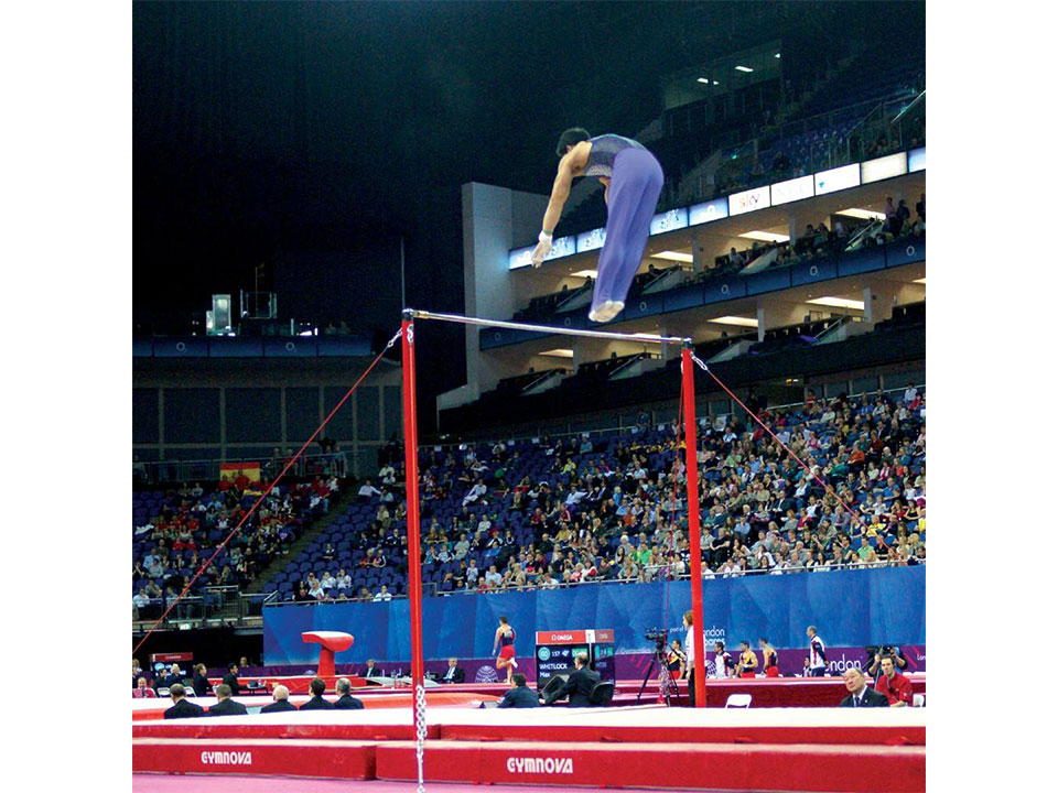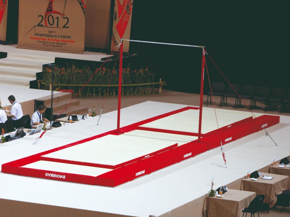 Xà đơn thi đấu. Thân trụ thép Ø70mm. Chiều cao điều chỉnh từ 2.70m đến 2.95m